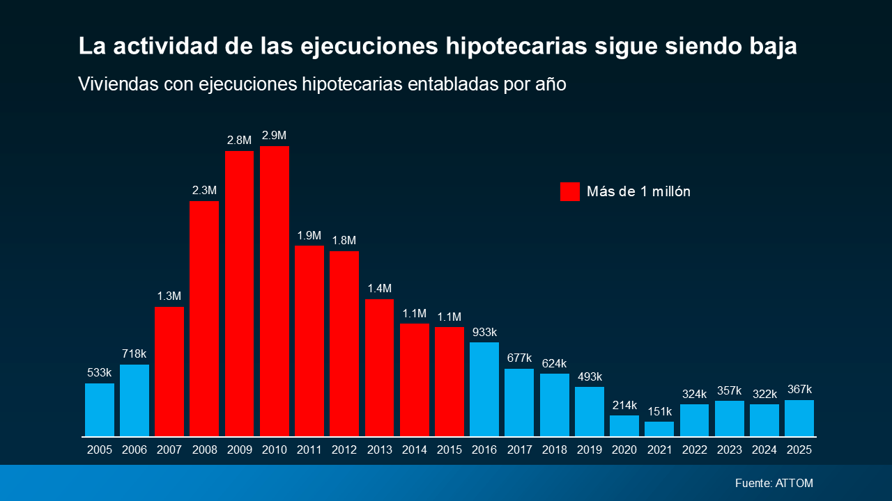 La actividad de las ejecuciones hipotecarias aumentó en el 2025, reflejando una normalización continua del mercado de la vivienda tras varios años de niveles históricamente bajos... Aunque las ejecuciones hipotecarias entabladas, iniciadas y los embargos aumentaron en comparación con el 2024, la actividad de las ejecuciones hipotecarias sigue muy por debajo de las normas previas a la pandemia y es una fracción de lo que vimos durante la última crisis de la vivienda... El repunte de hoy está impulsado más por la recalibración del mercado que por la preocupación generalizada de los propietarios, con posiciones sólidas en plusvalía y un préstamo más disciplinado que continúan limitando el riesgo”.