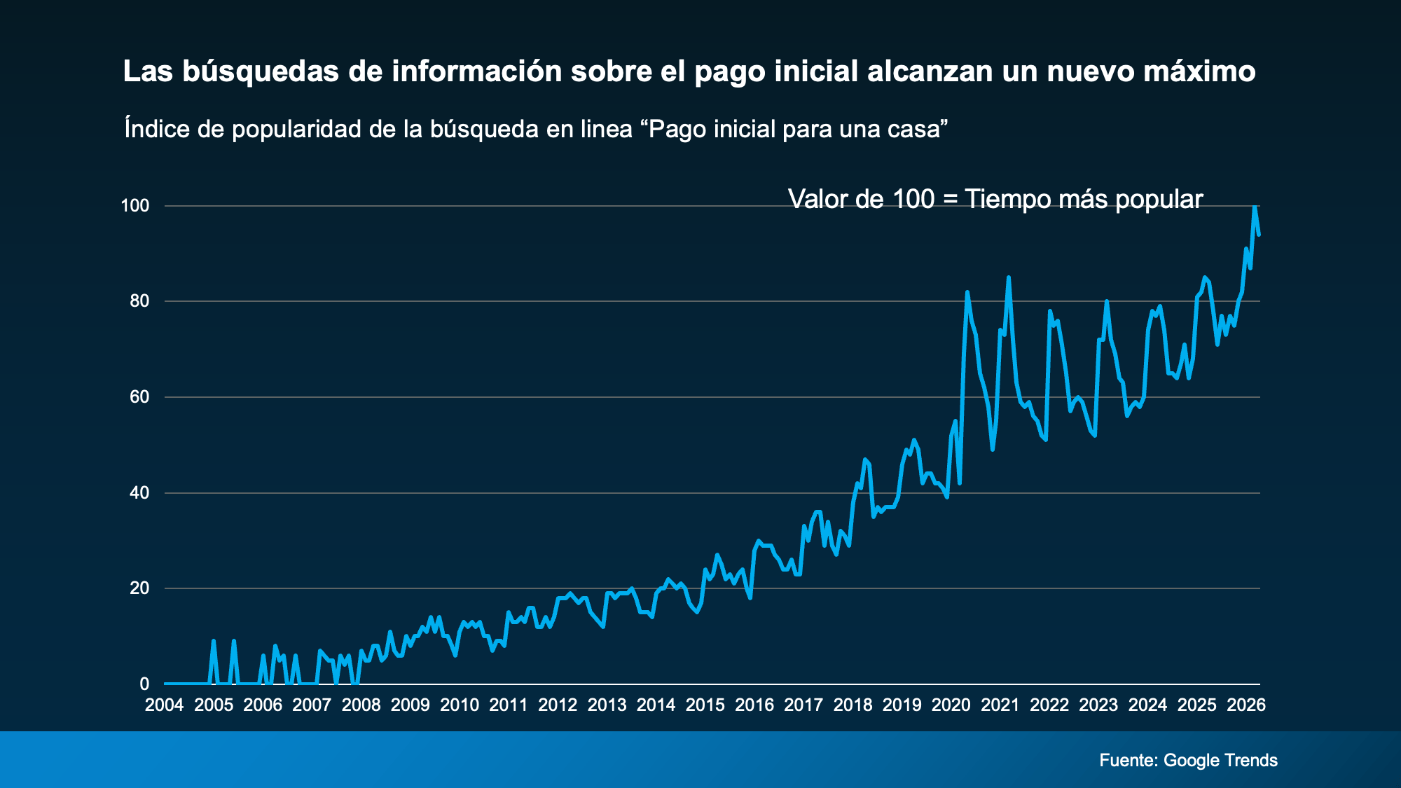 Según Google Trends, las búsquedas en línea de información sobre los pagos iniciales alcanzaron recientemente un máximo histórico. Y eso es una señal clara de que más compradores intentan averiguar cuánto necesitan realmente ahorrar antes de dar el paso (vea la gráfica siguiente):
