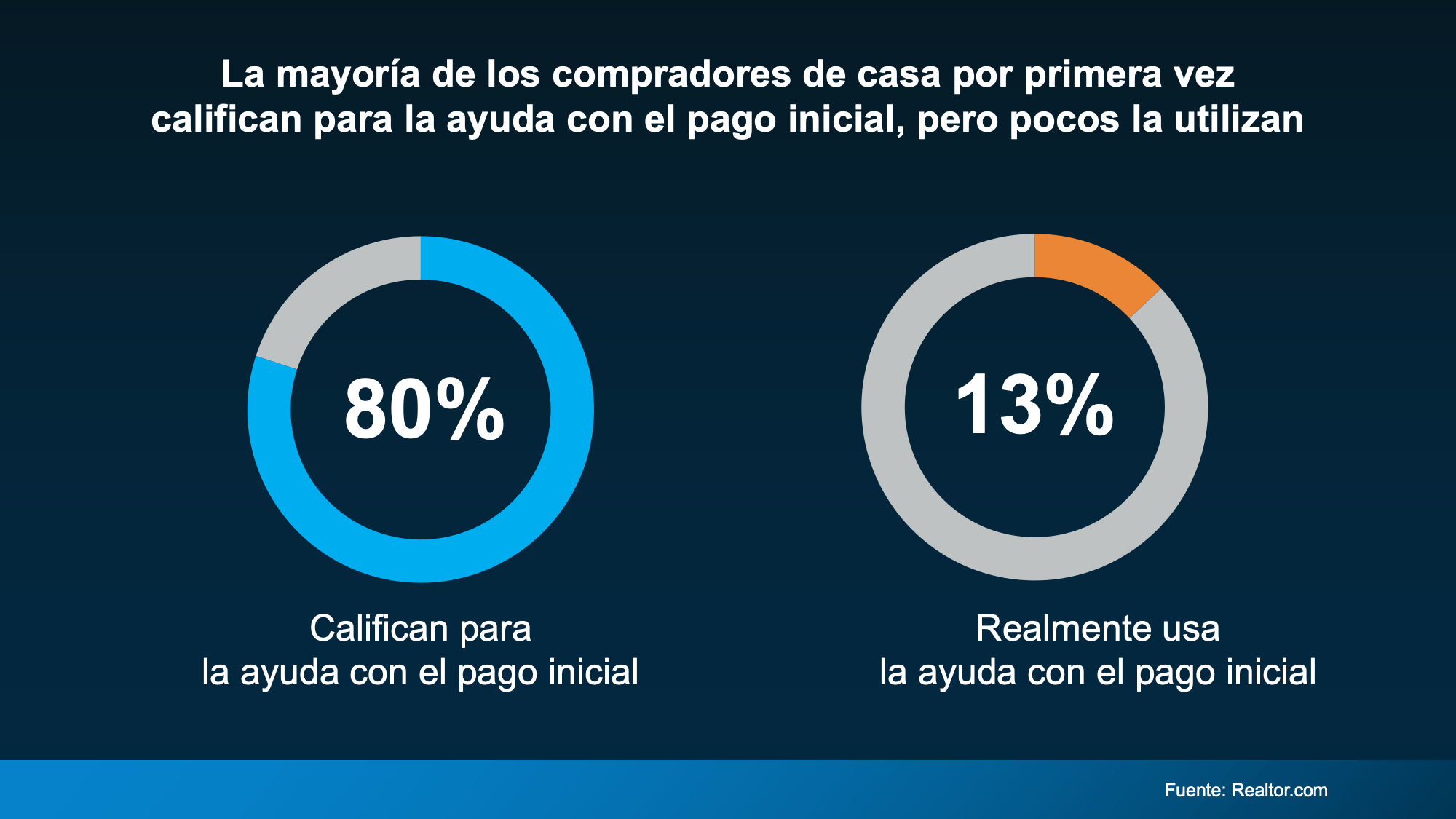 Investigaciones de Realtor.com muestran que casi el 80 % de los compradores de casa por primera vez califican para la ayuda con el pago inicial (DPA por sus siglas en inglés), pero solo el 13 % la utiliza realmente (vea la gráfica siguiente):