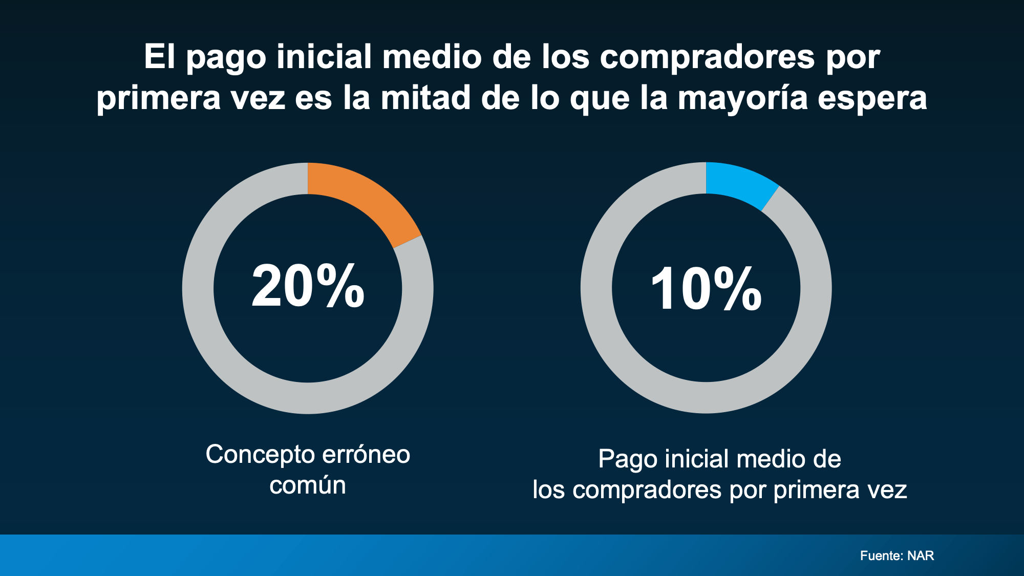 Según la Asociación Nacional de Realtors (NAR, por sus siglas en inglés), el pago inicial medio para los compradores por primera vez es solo del 10 %. Eso es la mitad de lo que probablemente usted esperaba.